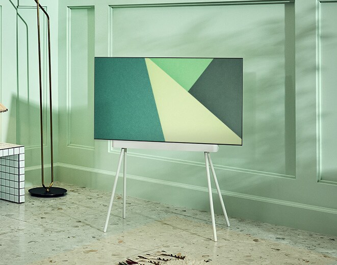 Widersetzen Sie sich aller Konventionen. Stellen Sie Ihren LG OLED-Fernseher mithilfe des Gallery-Standfußes4, des Floor-Standfußes5 oderdes schwenkbaren Standfußes6,7 genau dort auf, wo und wie Sie es möchten.
