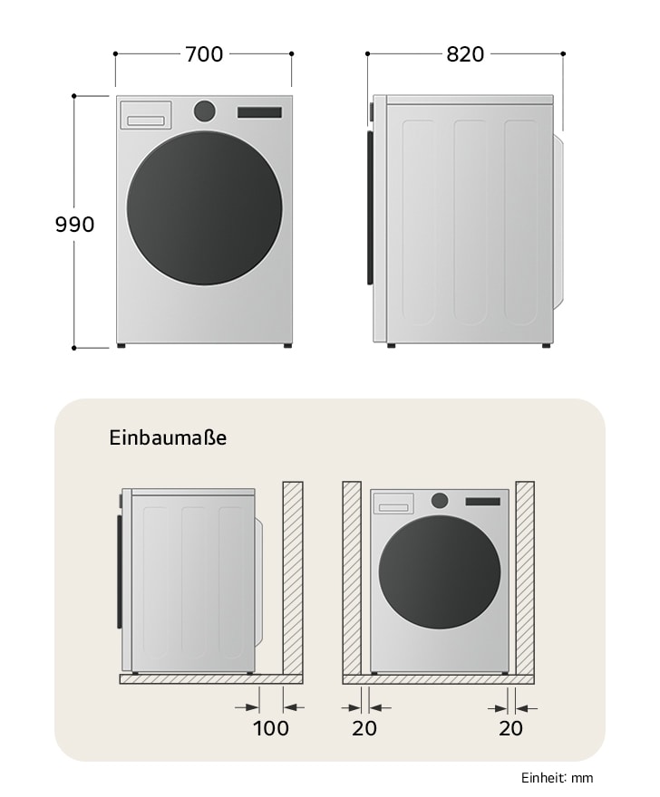 5. Vom Trockner beanspruchter Installationsfreiraum