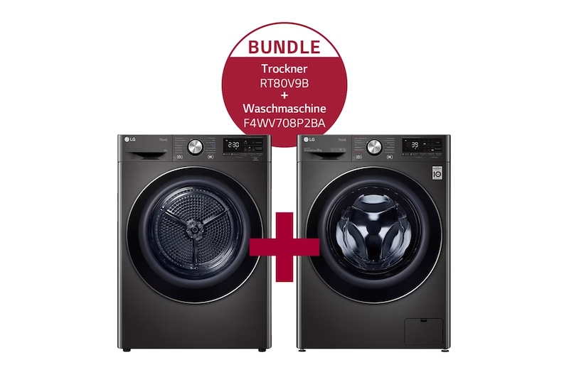 Schwarze Waschmaschine (8 kg, 1.400 U./Min.) und Trockner (8kg) im Set | F4WV708P2BA.RT80V9B