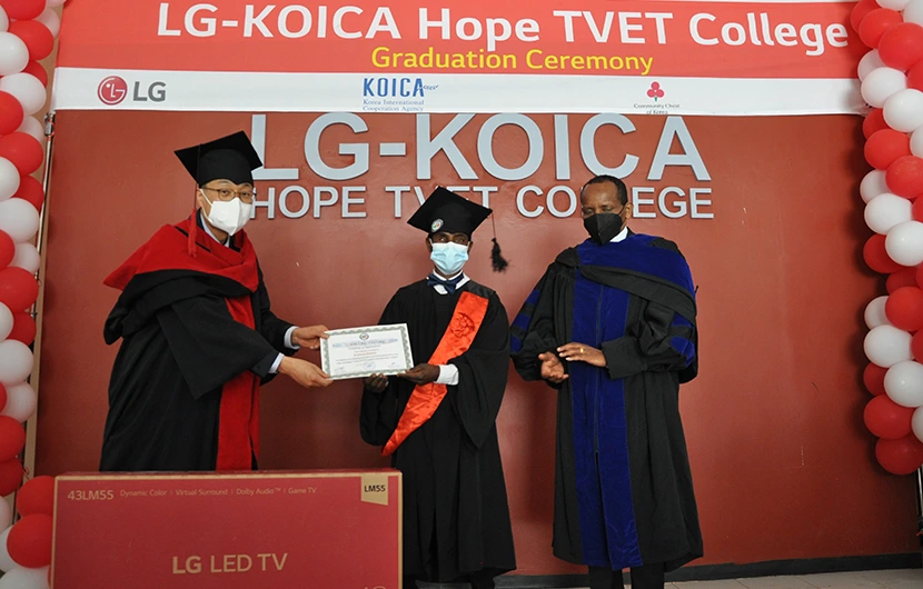 LG-KOICA Hope TVET had a 4th graduation in worldwide pandemic situation. Certificate of Competency pass rate is marked at 91.2% for the graduates. LG-KOICA Hope TVET became the only precedent that is sponsored by KOICA under IBS (Inclusive Business Solution) for longest period based on its great academic achievement (2013~2024). Upon the direction of Federal TVET Agency, the school re-opened face-to-face class with high level of COVID-19 prevention with scenario plan.