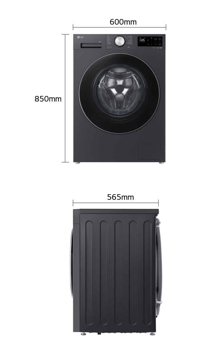 | All LG Washing Machines come in a standard height and width. The depth of LG washing machines can vary depending on the drum size / capacity. Standard dimensions are: width 600 mm x height 850 mm x depth 565-675 mm. |