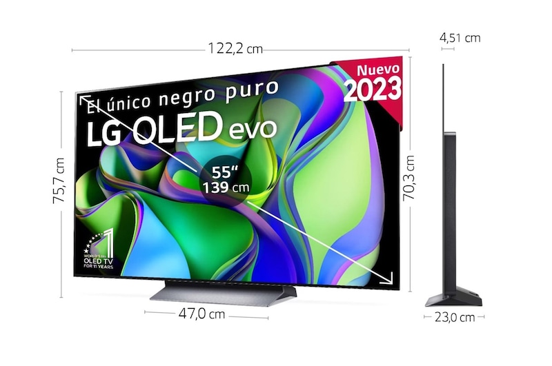 TV LG OLED evo 4K de 55'' C3, Procesador Máxima Potencia, Dolby Vision / Dolby ATMOS, Smart TV webOS23, el mejor TV para Gaming.