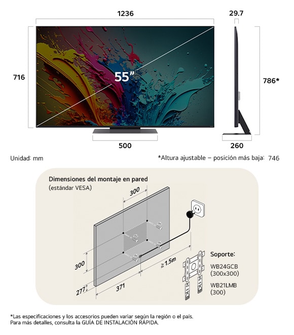 • Dimensiones TV Sin peana (AnxAlxPr mm)