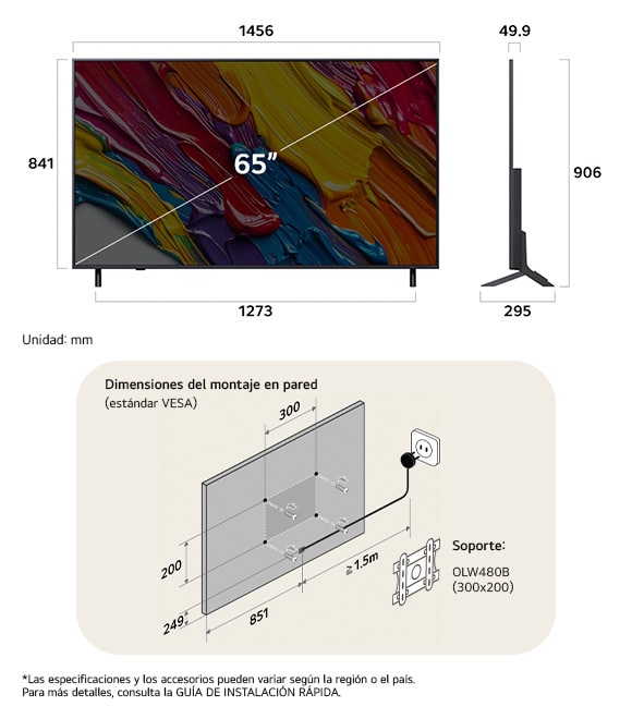 Dimensiones TV Sin peana (AnxAlxPr mm)