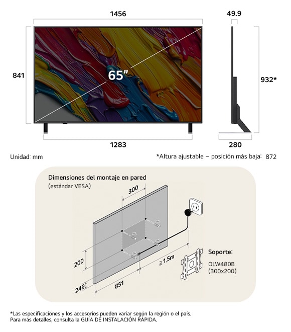 • Dimensiones TV Con peana (AnxAlxPr mm)