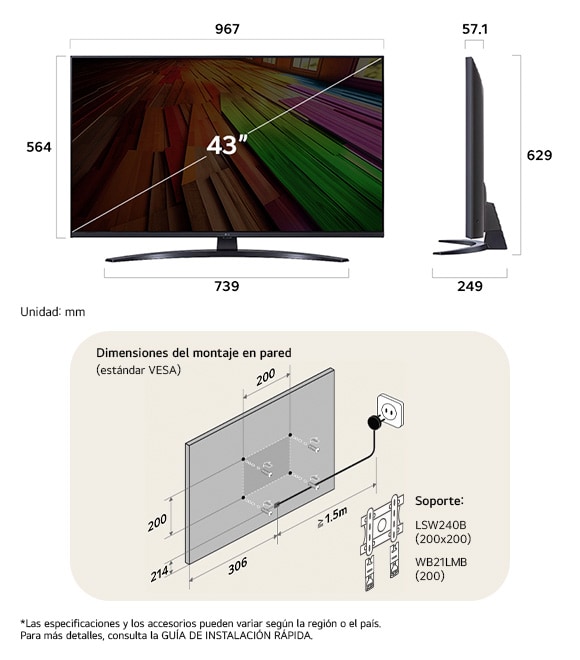 • Dimensiones TV Con peana (AnxAlxPr mm)