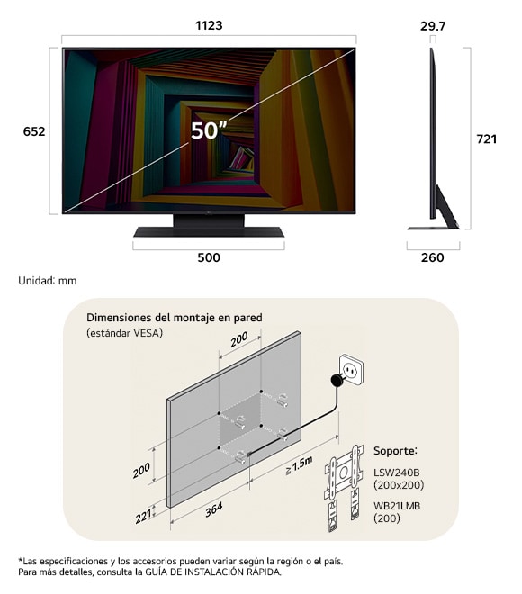 • Dimensiones TV Con peana (AnxAlxPr mm)