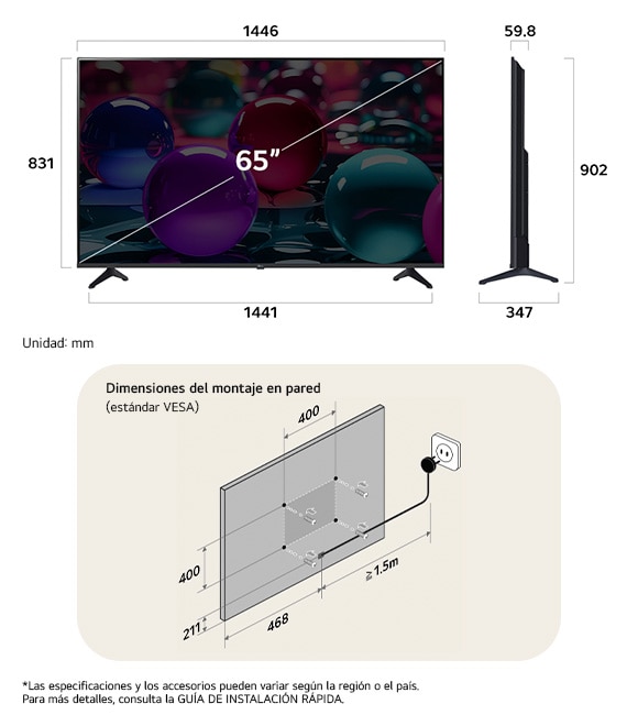 • Dimensiones TV Sin peana (AnxAlxPr mm)