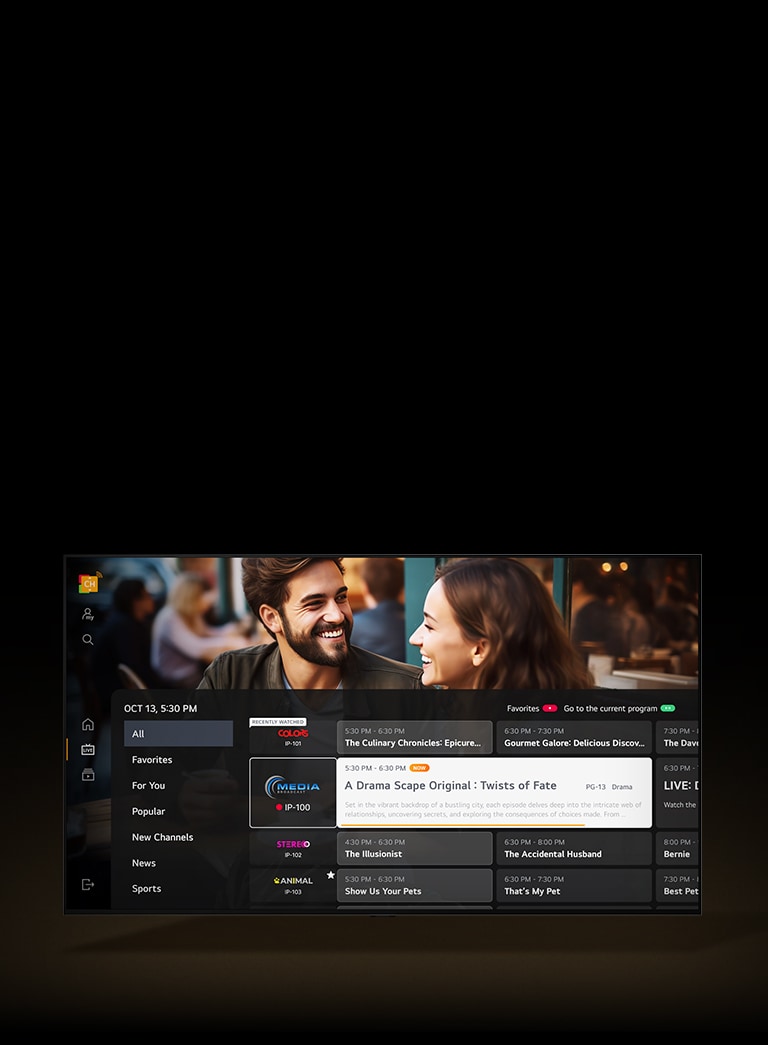 LG Channels sisältää laajan valikoiman suorina lähetettäviä ohjelmia. Löydä uutta katseltavaa käyttäjäystävällisellä käyttöliittymällä kanavaa pysäyttämättä tai vaihtamatta.