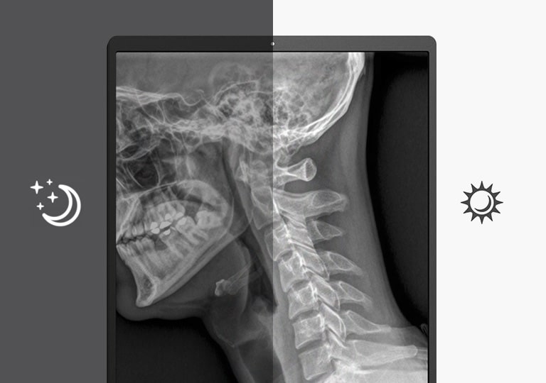 Le capteur frontal intégré permet un étalonnage facile sans avoir recours à un équipement de mesure supplémentaire. Il améliore la qualité et la cohérence des images médicales affichées en préservant des valeurs précises.