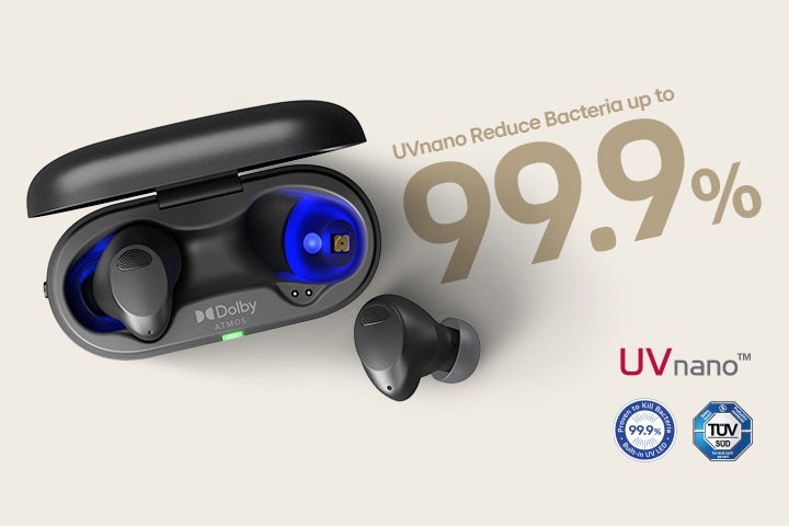 De puissantes LED UV sont intégrées au boîtier de chargement UVnano*, éliminant jusqu'à 99,9% de certaines bactéries* situées sur le maillage et les embouts en silicone de vos écouteurs sans fil à chaque fois que vous les placez à l’intérieur du boîtier pendant 10min.