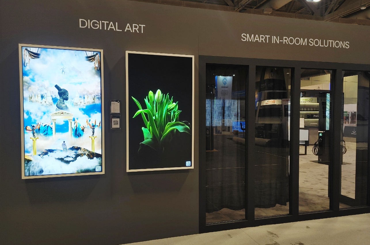 Visitors can also see how LG’s commercial display solutions enable a diverse range of experiences and capabilities for specific hospitality scenarios. Starting in the Lobby zone, a 65-inch 4K display shows how hotels can integrate digital art canvases and live content provided by Blackdove and Apollo, a digital art subscription service and LG partner. Located next to this is LG’s cutting-edge Transparent LED Film, which can be applied to glass surface, including windows.