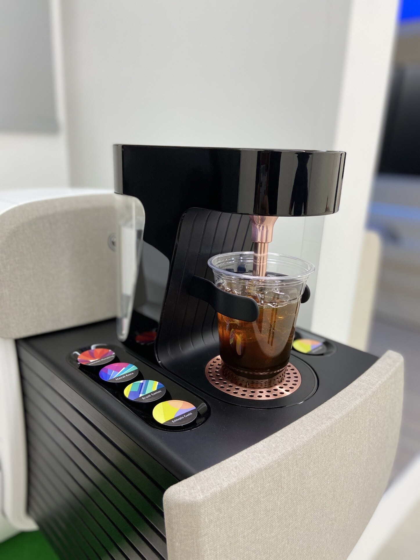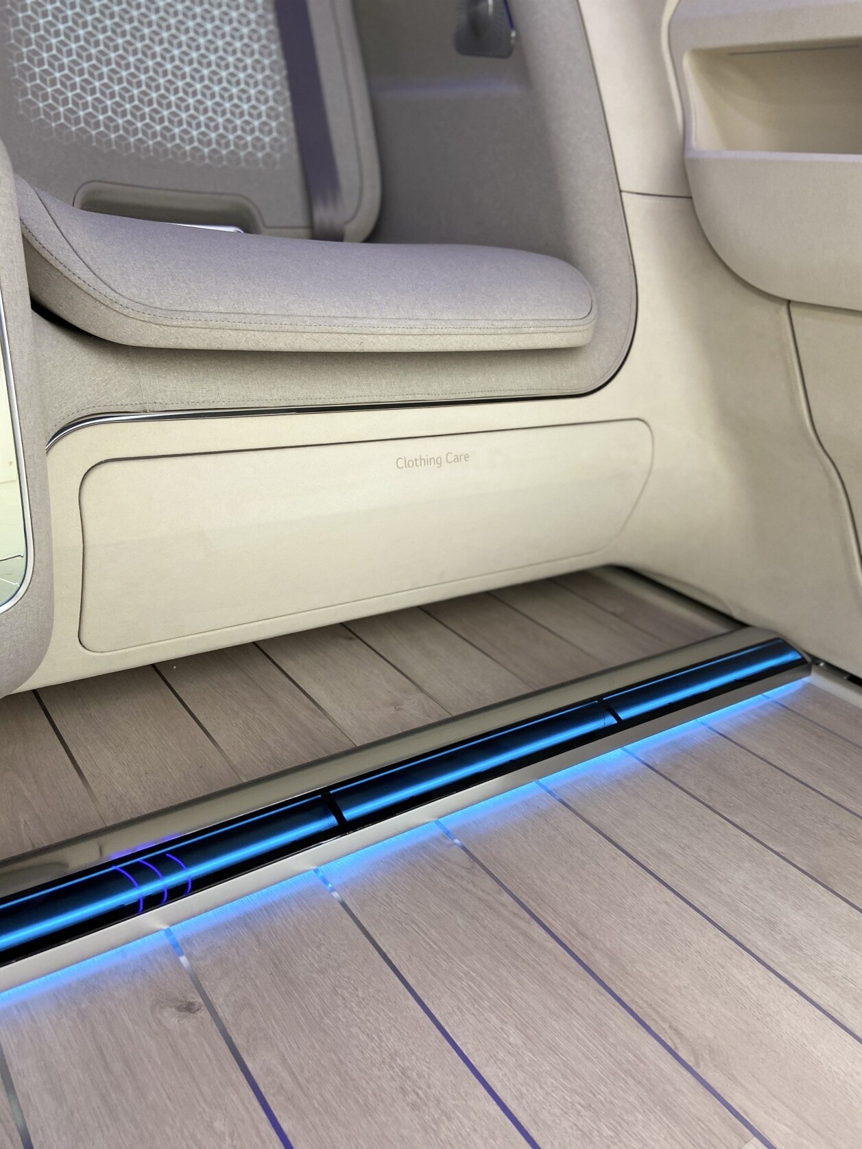 The IONIQ Concept Cabin is equipped with a number of amenities that truly makes this space a home away from home. For example, a capsule coffee machine makes and delivers the perfect cup for the morning commute, a compartment under the seat dries and refreshes wet or stale shoes before reaching one’s destination, a wardrobe manager keeps clothes neat and wrinkle free during the drive and a mini refrigerator keeps beverages chilled for those hot summer drives.