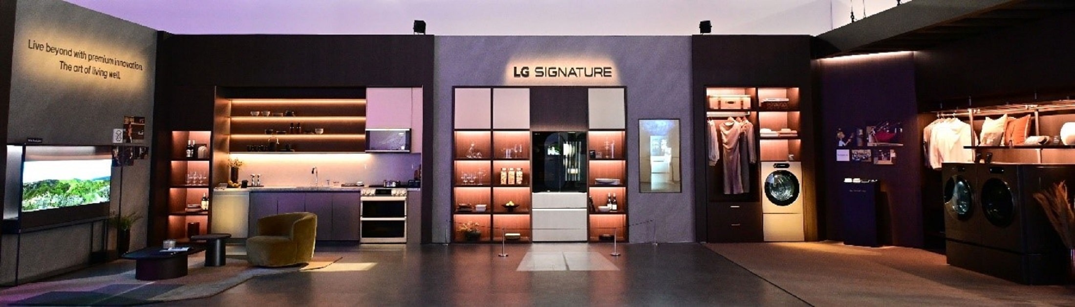 Within the Night area of the zone, LG seamlessly integrated its premium appliances with sophisticated designs. The centerpiece was a second-generation LG SIGNATURE 4-Door French-Door refrigerator with a transparent OLED door panel, standing proudly beside the LG SIGNATURE Smart InstaView™ Over-the-Range Microwave and Slide-in Double Oven Induction Range, created in collaboration with the premium Italian furniture brand Molteni&C. Also featured were intelligent home solutions, including the LG SIGNATURE Washer & Dryer with AI DD technology and a striking 29-inch matte black washing machine and dryer pair that complemented the Molteni&C dressing room – each element showcasing LG SIGNATURE’s “Live Beyond” philosophy and premium innovations.
