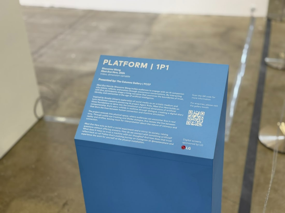 This distinctive art piece invites the audience to engage with an AI companion (Eva) who listens, reflects and evolves through anonymous conversations displayed on screen. By interacting with Eva, participants can shape a living narrative that examines the boundaries of trust, identity and connection in the age of artificial intelligence.