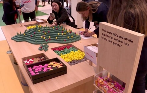 LGâs ongoing commitment to addressing the importance of recycled materials was also on show at IFA 2023 in Berlin, Germany, last September. The companyâs exhibition booth hosted a number of activities to raise awareness of the importance of plastic recycling, including the planting of resin-pallet âtreesâ at the LG Sustainable Villageâs Upcycling Workshop Zone.