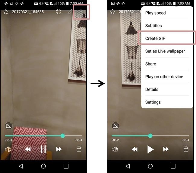 1. Using the default video player in the G6, view the video you wish to convert to GIF