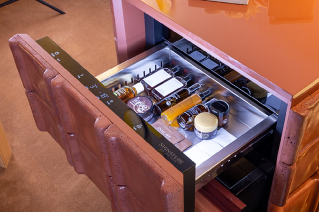 Coinciding with Milan Design Week, LG showcased a variety of stunning appliances brought to life through its collaborations with high-end furniture brands and design groups. This year, acclaimed furniture designer and architect Patricia Urquiola, known around the world for iconic designs such as the Dudet Chair and Sengu Table, partnered with LG to create a new masterpiece for Signature Kitchen Suite. Visitors to the Signature Kitchen Suite Showroom have the privilege of seeing Urquiola and LG’s ultra-chic undercounter modular refrigerator in person.