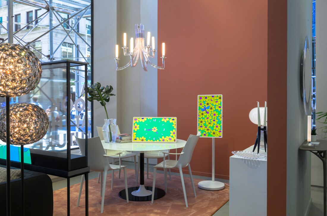 Throughout the Kartell store, StanbyME 2 lifestyle screens are featured in multiple arrangements, mounted on stands or placed on sleek, modern tables. LG’s lifestyle screen Posé also added a sophisticated touch to the space, blending effortlessly with the cutting-edge furniture and enhancing the overall atmosphere with its stylish look.