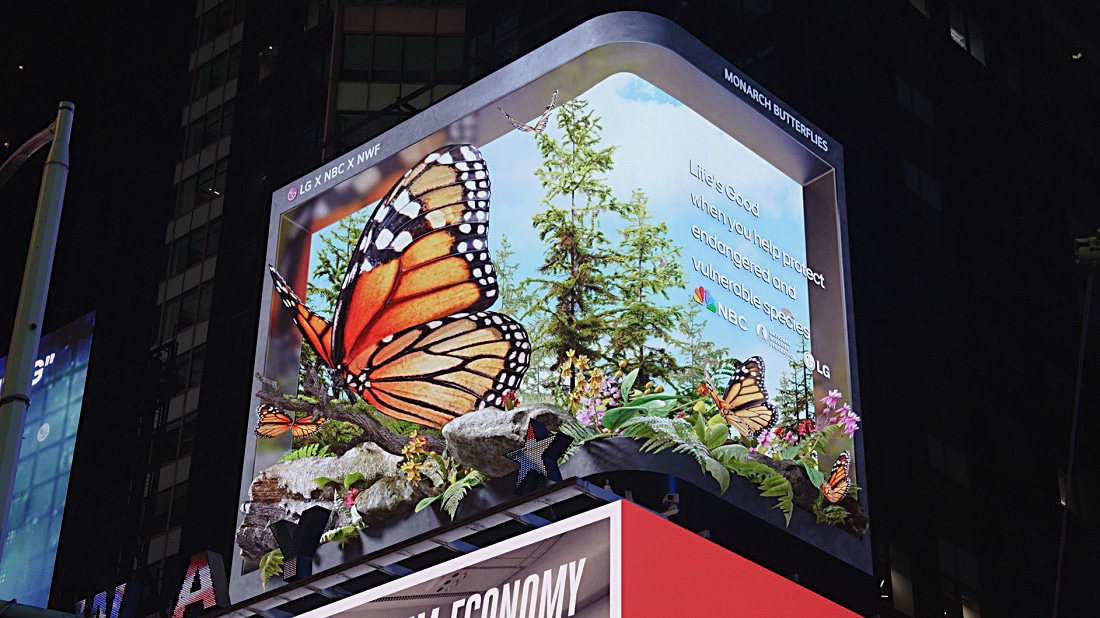 Throughout 2024, LG has used its high-profile digital display to showcase the beauty and significance of some of the world’s most vulnerable creatures. Previous campaigns have featured the snow leopard, bald eagle, sea lion and red wolf, bringing them to life through breathtaking 3D visuals. These stunning representations serve as a reminder of the importance of preserving nature’s delicate balance.