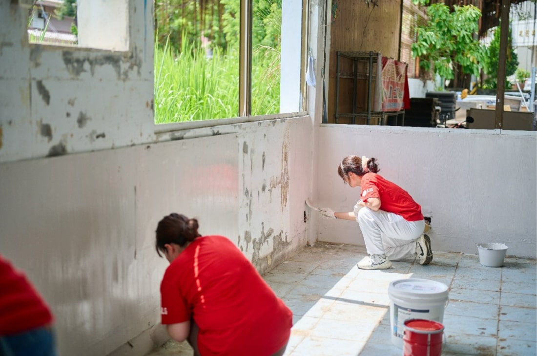 Under the leadership of Jeong Yeon-kwan, managing director of LG Taiwan, a team of 23 LG employees joined student volunteers from Feng Chia University in Hualien to transform a building into an inspirational learning environment with a new lick of paint and various decorations.