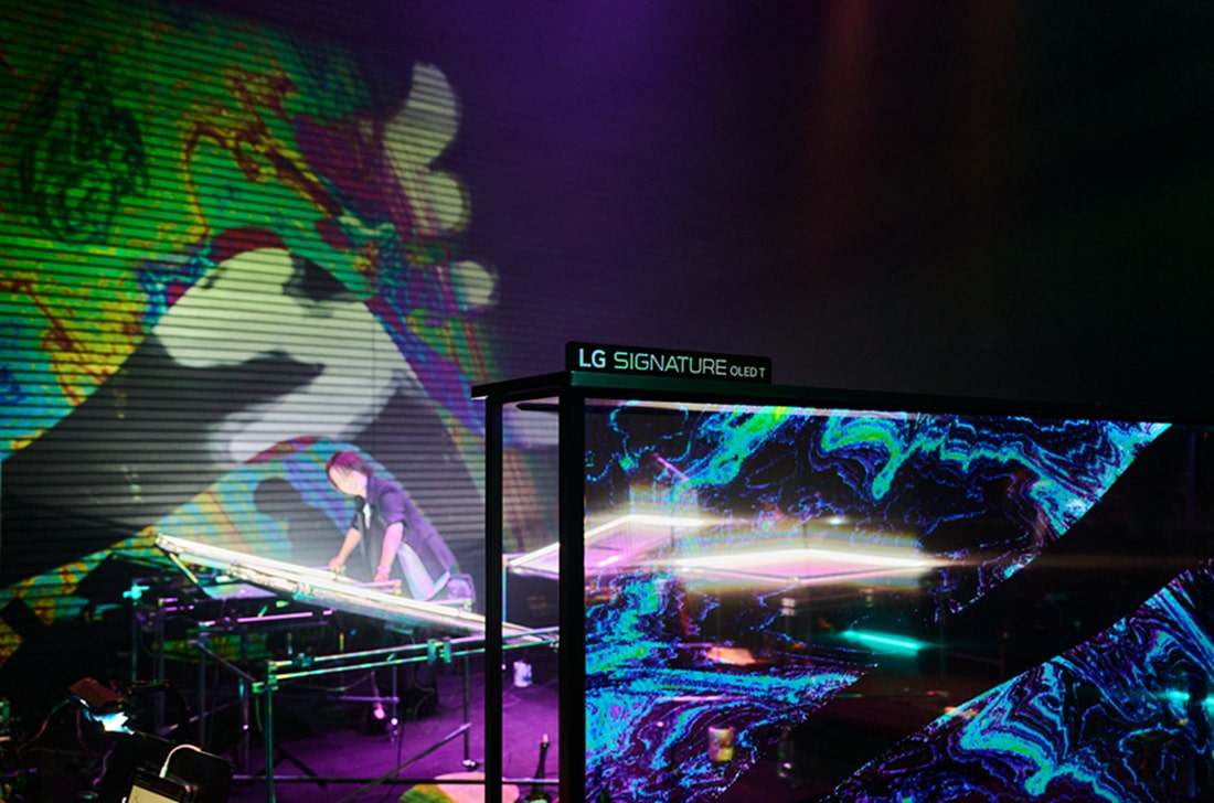 As part of the performance, the LG SIGNATURE OLED T became a dynamic digital canvas that blurred the boundaries between the physical and digital worlds. Visual artist Moon Hung, renowned for his real-time artistic creations, used the transparent OLED in harmony with projection mapping and an interactive soundscape, crafting visuals that appeared to float effortlessly in mid-air.