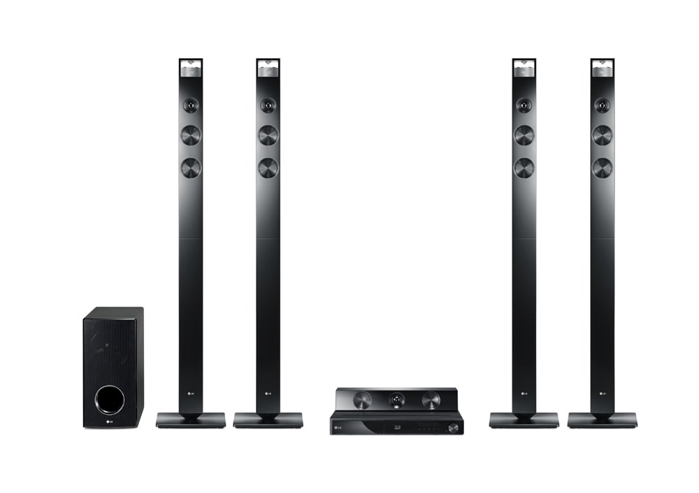 Close-up view of a complete set of LG’S HX906TX CINEMA 3D SOUND lineup