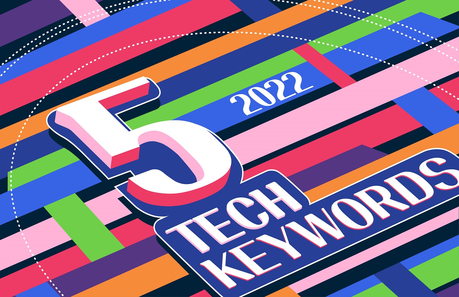 The cover image of the graphic news article with the title, "2022 5 TECH KEYWORDS"