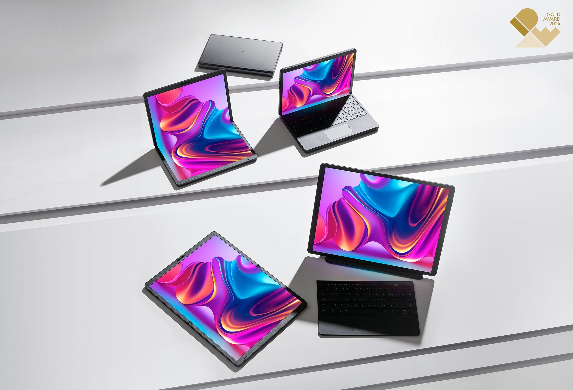 The second Gold award was awarded to the “LG gram Fold,”* a foldable laptop that combines the ultra-lightweight design and large-screen experience of the LG gram series with the adaptability of a foldable display. Utilizing thin OLED technology, this device can shift between a 12-inch laptop and a 17-inch tablet, with an optimized user interface and experience for each mode.