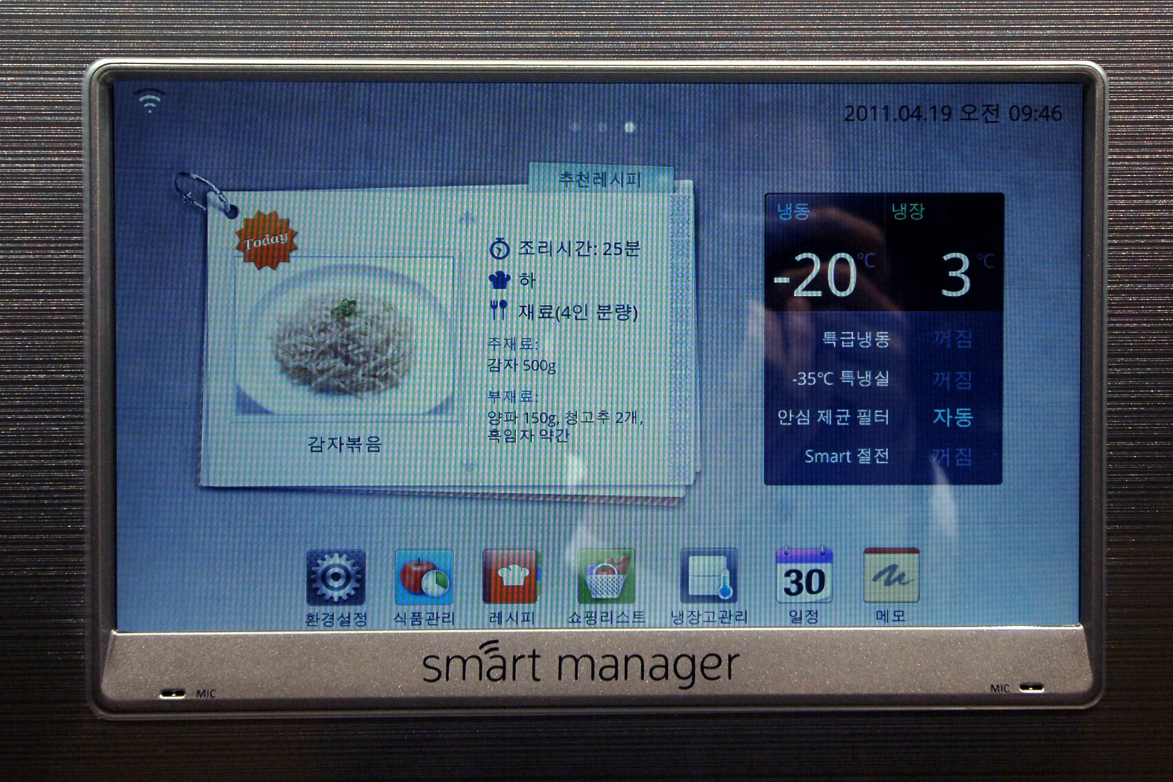 Smart Manager, LG’s food management system, informs users what is in their fridge, where it is and when it expires. This information is accessible via smartphones or tablets through Smart Access so users can have it at their fingertips when they are out grocery shopping or dining at a restaurant planning how to emulate the chef’s gourmet dishes at home. The fridge can even recommend healthy recipes based on what foods are currently available.