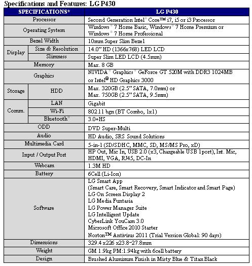 SEOUL, May 3, 2011 –- LG Electronics (LG) today introduced two notebooks – the P430 and P530 – as the first in the company’s new “Blade” series to be launched later this month.