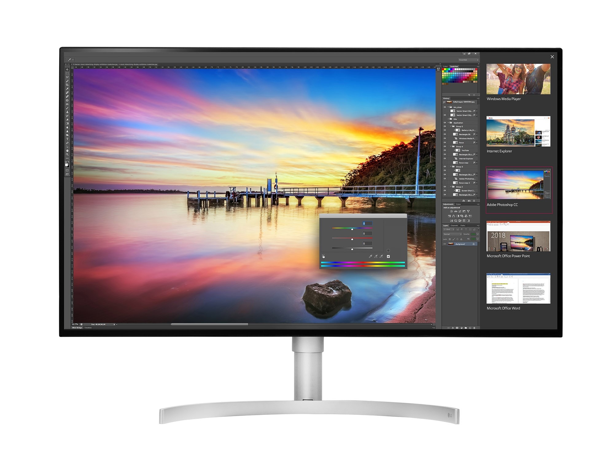 LG’s new 32-inch UHD 4K monitor (model 32UK950) is the first to offer LG’s advanced Nano IPS technology. Nano IPS technology involves the application of nanometer-sized particles to the screen’s LED to absorb excess light wavelengths. This greatly enhances the intensity and purity of on-screen colors for a more accurate and lifelike viewing experience. This LG monitor can display 98 percent of the DCI-P3 color spectrum, comparable to monitors used to master Hollywood blockbusters. Ideal for media prosumers seeking superb color reproduction with its support for HDR 600 LG 32UK950 users will experience high dynamic range of peak brightness of 600 candela (cd/㎡).