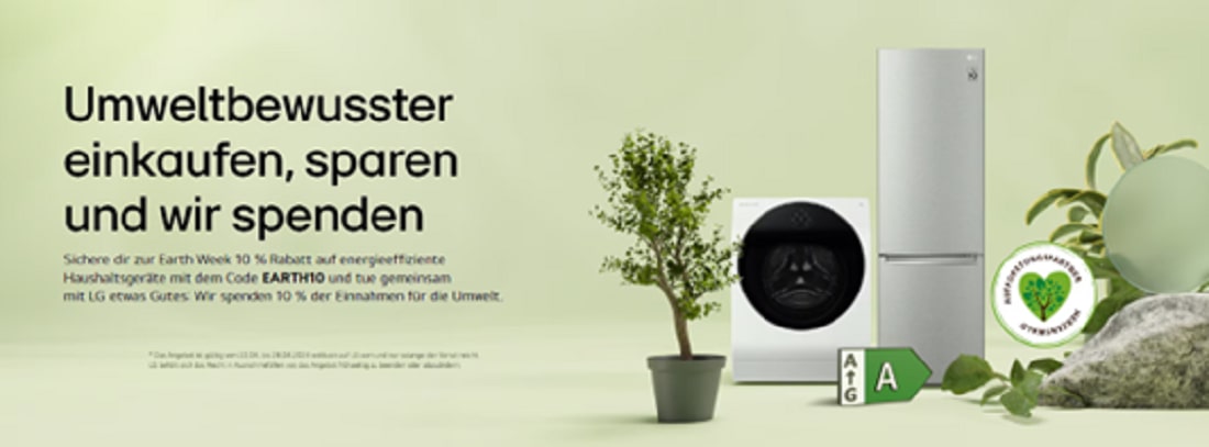 To start off in Germany, the company turned Earth Day into a week-long event through Earth Week on its online brand shop. From April 22 to 28, German consumers will receive a 10 percent discount on all LG household appliances with a green energy label purchased onĀ LG.com/de, not only saving money but also energy at the same time.