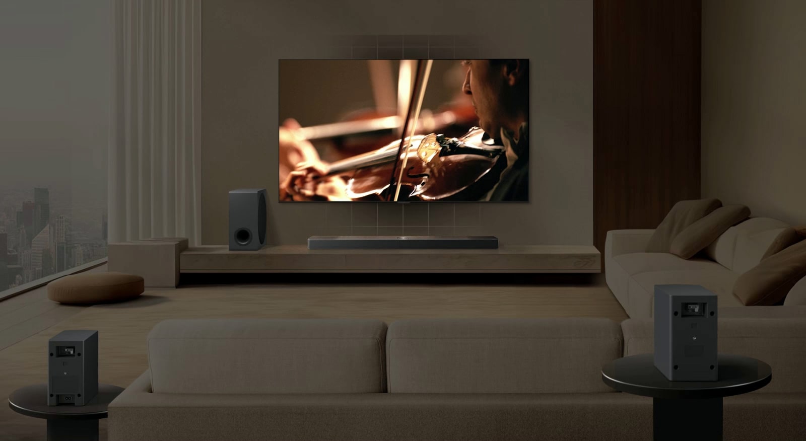 3.Σε ένα urban rooftop: Για βραδιές με φίλους στην ταράτσα, το LG Soundbar μετατρέπει το σκηνικό σε ένα αυθεντικό ηχητικό lounge. Με ασύρματη συνδεσιμότητα και κομψό σχεδιασμό, προσφέρει κορυφαίο ήχο χωρίς καλώδια3, σε ένα περιβάλλον όπου η αισθητική μετράει.