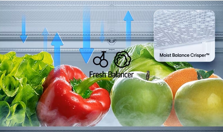 Η τεχνολογία LinearCooling™[1] μειώνει τις διακυμάνσεις της θερμοκρασίας, διατηρώντας σταθερές συνθήκες που βοηθούν τα τρόφιμα να παραμένουν φρέσκα και γευστικά. Παράλληλα, το DoorCooling+™[2] εξασφαλίζει ομοιόμορφη ψύξη ακόμη και στα τρόφιμα που βρίσκονται στην πόρτα, ενώ το FRESHBalancer™[3] ρυθμίζει με ακρίβεια την υγρασία, ώστε τα φρούτα και τα λαχανικά να παραμένουν τραγανά και γεμάτα βιταμίνες.