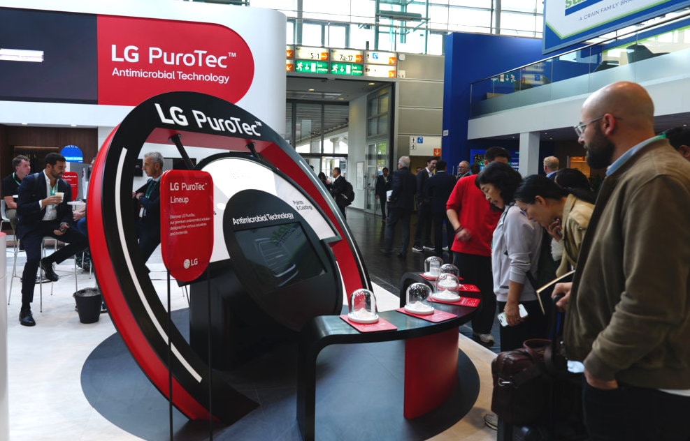 Αποδεικνύοντας το βάθος και την ποικιλία των προϊόντων της, η LG παρουσίασε πέντε βασικές σειρές προϊόντων PuroTec στην έκθεση. Το LG PuroTec είναι ένα αντιμικροβιακό πρόσθετο με βάση μια γυάλινη μήτρα που μπορεί να ενσωματωθεί σε πλαστικά, επιχρίσματα, επιστρώσεις σε σκόνη και υφάσματα, προσφέροντας αντιβακτηριακές και αντιμυκητιακές ιδιότητες. Αποτελεσματικό στην πρόληψη των οσμών και της μόλυνσης που προκαλούνται από μικροοργανισμούς, βοηθά στη διατήρηση της καθαριότητας και της ανθεκτικότητας του προϊόντος. Βασισμένο στην πολυετή εμπειρία της LG στην έρευνα και ανάπτυξη γυάλινης σκόνης – και μετά την επιτυχημένη εφαρμογή του σε οικιακές συσκευές – το PuroTec αναδείχθηκε γρήγορα σε βασικό μοχλό ανάπτυξης στο χαρτοφυλάκιο B2B της LG, με τις ετήσιες πωλήσεις να υπερδιπλασιάζονται σε ετήσια βάση.
