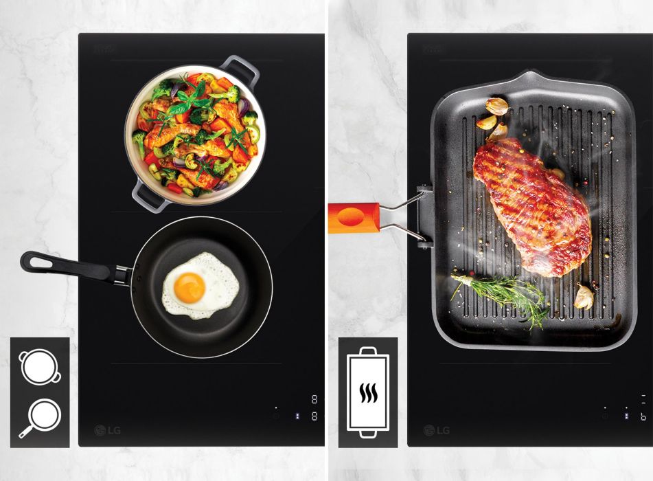 Slične prednosti donose i LG indukcijske ploče. Indukcija zagrijava izravno posuđe, a ne površinu ploče, čime omogućuje veću energetsku učinkovitost i brže zagrijavanje. Funkcija Flexible Zone omogućuje spajanje dviju zona kuhanja u jednu veću površinu, idealnu za veće posude ili pladnjeve, dok Slide Touch upravljanje omogućuje preciznu kontrolu snage jednostavnim povlačenjem prsta.