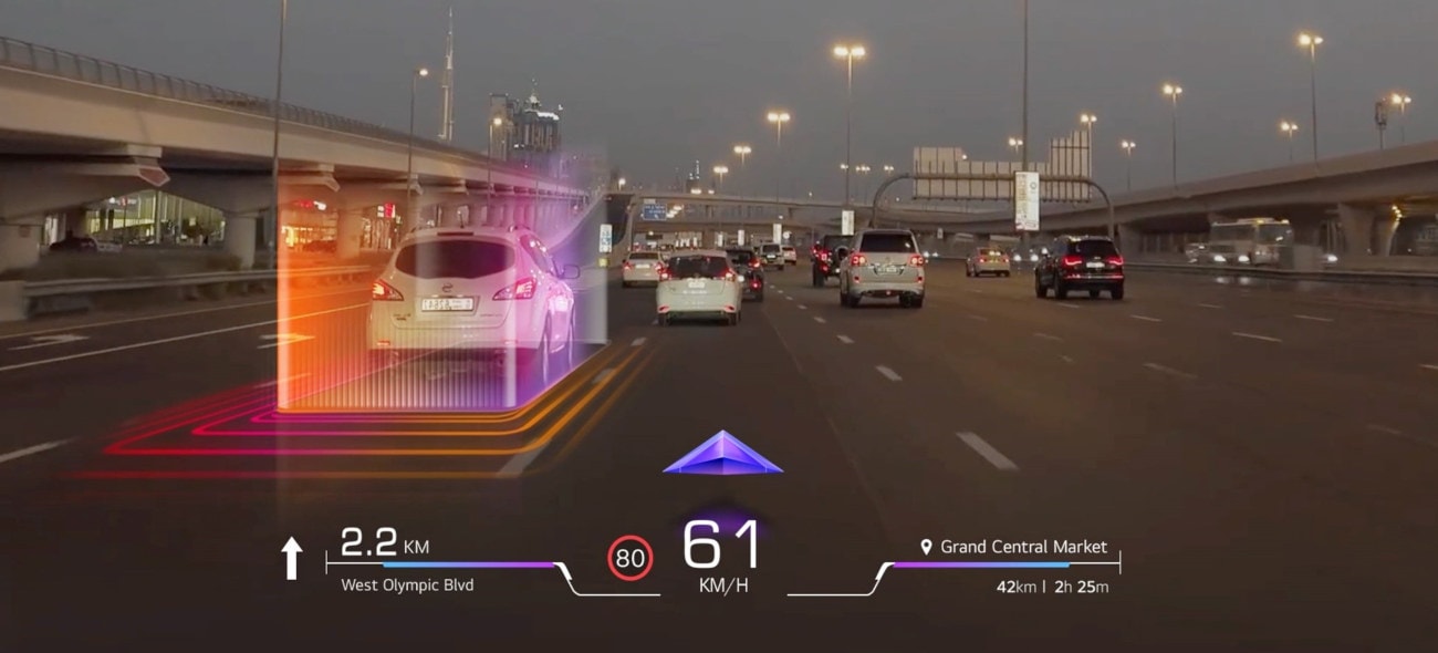 Az LG szabadalmaztatott technológiájának egyik kulcseleme, hogy képes dinamikus AR-képek megjelenítésére. Mindez intuitívabbá teszi az útvonal-ajánlást: a megoldás a közlekedési körülmények alapján valós időben módosítja a járműhöz kapcsolódó információk és az irányt mutató szimbólumok megjelenítését. Az AR által alkalmazott grafikai elemek szétválhatnak, átalakulhatnak és összeolvadhatnak, ennek révén pedig a rendszer a járművezető számára könnyen érthetően, vizuálisan képes megjeleníteni olyan összetett vezetési információkat, mint a sebesség, az út lejtése, a szükséges sávváltások, vagy az útvonal-újratervezések.