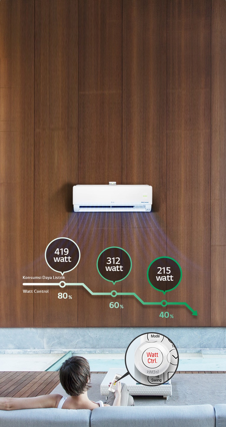 **Besaran penurunan daya (watt) menggunakan AC LG DUALCOOL with Watt Control kapasitas ½ PK.