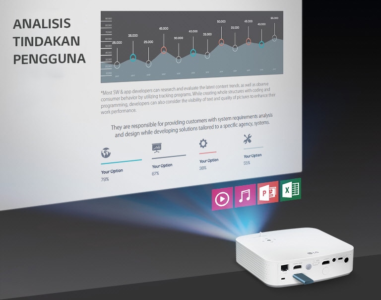 Hingga 100”, Resolusi Full HD (1920x1080)600 ANSI lumen, Sistem Pencahayaan LED (Hingga 30.000 Jam)1W + 1W Speaker Stereo