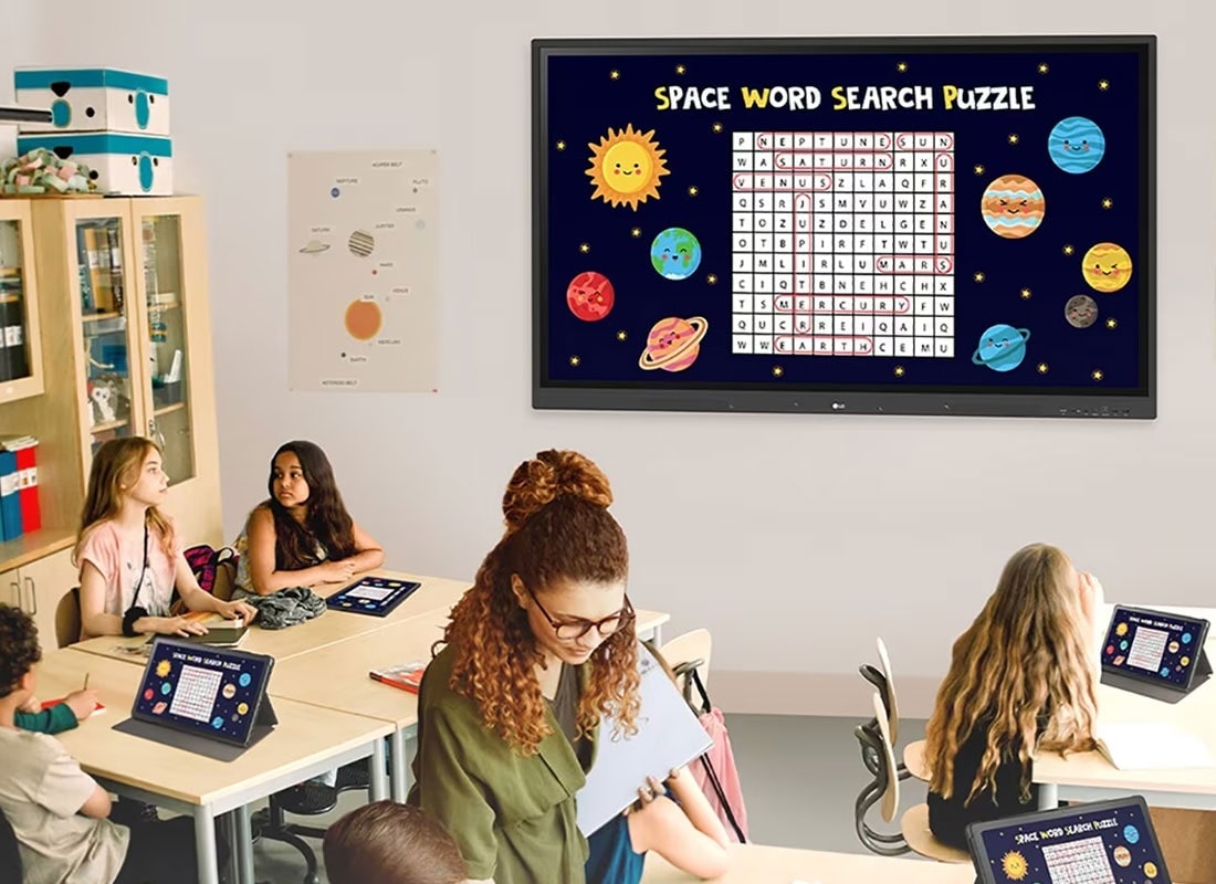 LG CreateBoard offers a variety of educational templates and teaching tools such as a ruler, table, and sticky notes, allowing for active engagement by students and enabling intuitive classes.