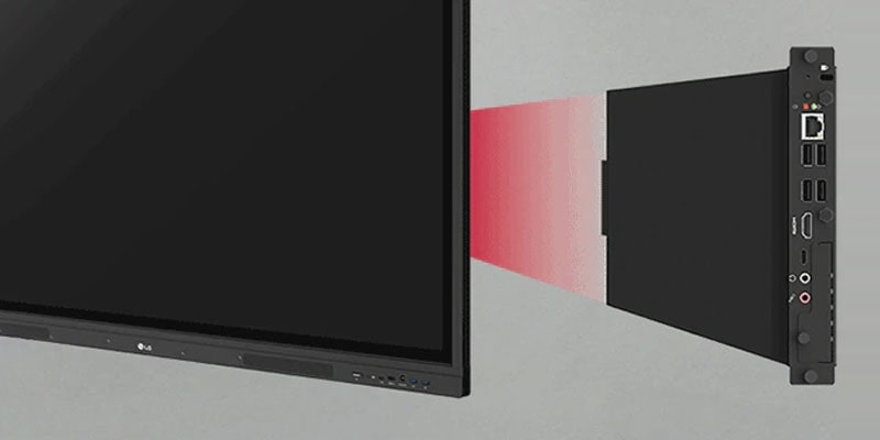 LG CreateBoard supports OPS slots, allowing you to easily and conveniently mount OPS desktop at the back of the LG CreateBoard without the hassle of connecting to an external desktop, offering you more expanded functions.
