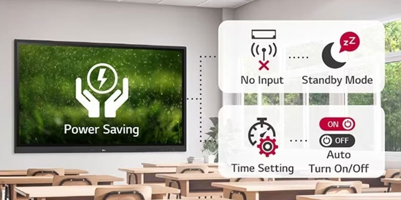 When a device doesn't receive an external input signal for a specific amount of time set by the user, the device goes into standby mode. Devices can also be automatically turned on or off at specific time or day set by the user, which contributes to save energy.
