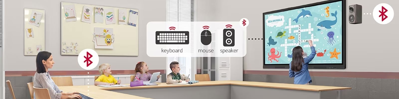 LG CreateBoard supports wireless Bluetooth connections to various devices such as a speaker, mouse, keyboard, etc.
