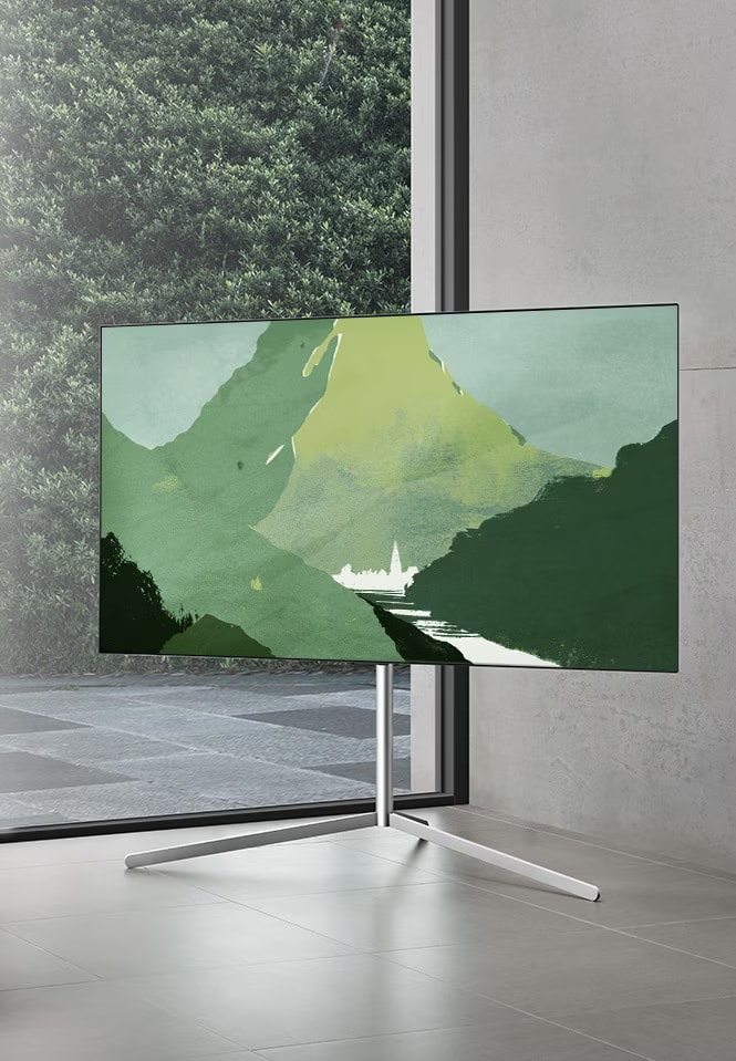 Quando li appendi, i nostri TV OLED Gallery Design sembrano dei quadri. Grazie al retro completamente piatto2, lo schermo ultrasottile si posiziona a filo della parete, proprio come se fosse un dipinto. Senza angoli sporgenti, senza distrazioni. Anche quando è spento, il televisore è un complemento d'arredo che valorizza i tuoi interni.