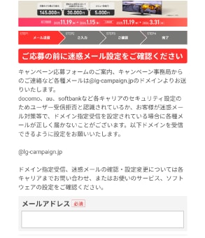 - ※必ず@lg-campaign.jpからのメールアドレスを