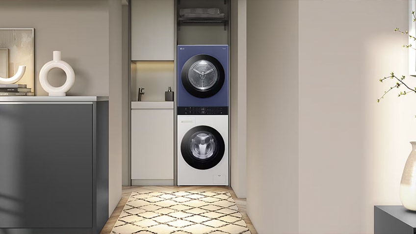 LG WashTower™ W4W8LVPK4HM – это универсальное решение, которое одинаково органично впишется в балкон, ванную, коридор или полноценную прачечную. Башня WashTower™ экономит место, упрощает уход за одеждой и становится стильным элементом современного дома.
