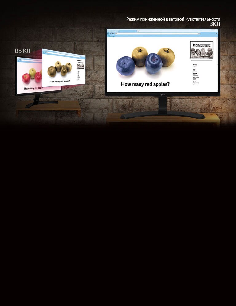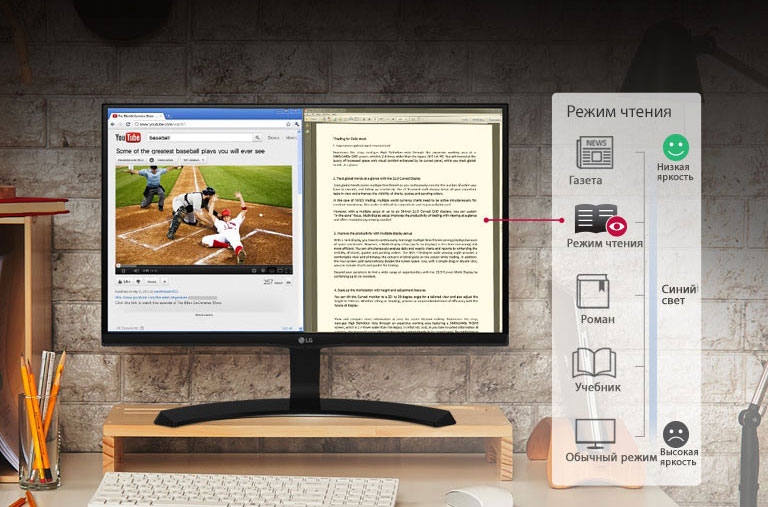 Режим Чтения 1 / Режим Чтения 2 / Фото / Кино / Игра / Пользов. / Нарушение цветовосприятия
