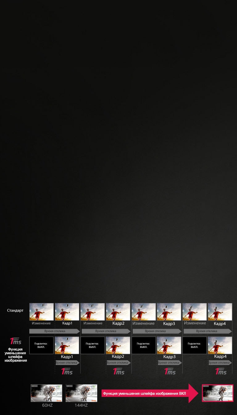 Поскольку в период загорания и затухания жидких кристаллов подсветка отключена, размытость изображения движущегося объекта уменьшается, время отклика сокращается.