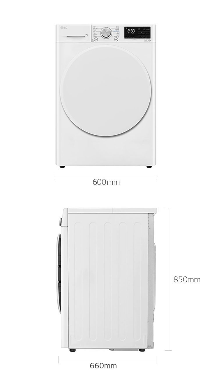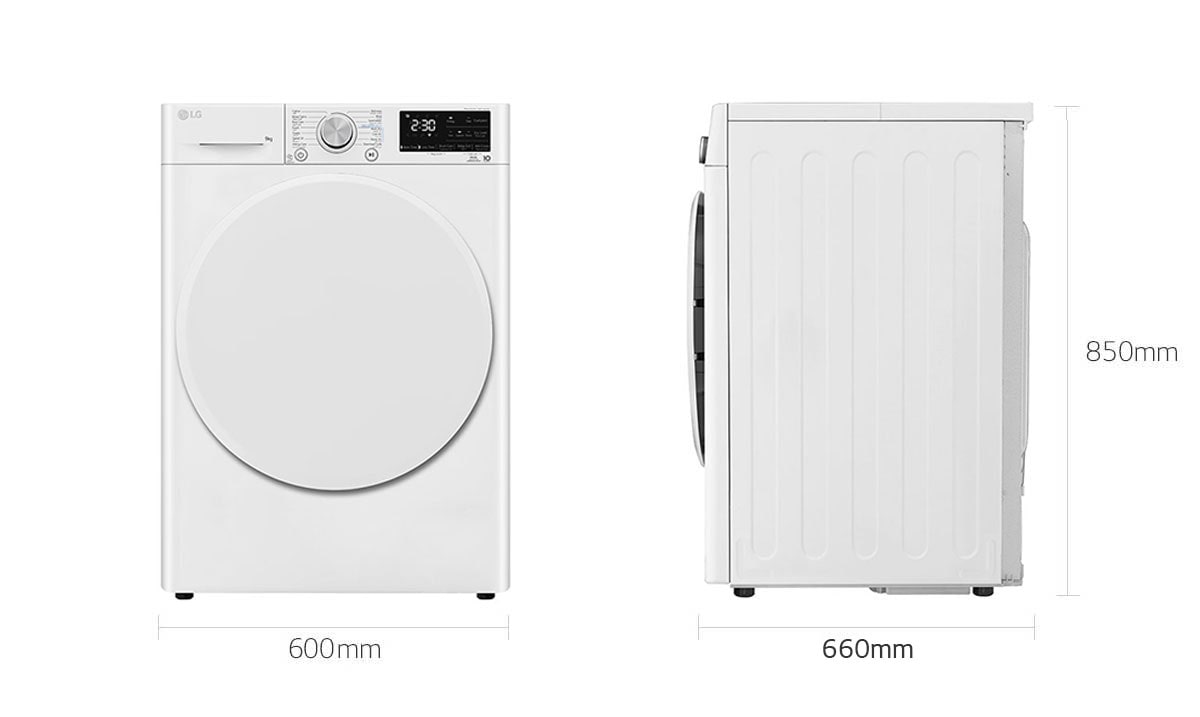 يستخدم مجفف LG DUAL Inverter Heat Pump™ أسطوانتين، بينما المجففات الأخرى المُزوَّدة بمضخة تسخين تستخدم أسطوانة واحدة.